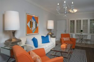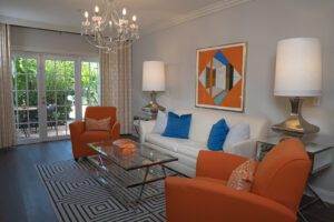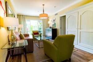 One Bedroom Bungalow Suite with Private Patio at The Escalante features custom décor, a separate living room, master bedroom with king bed and en suite marble bath.