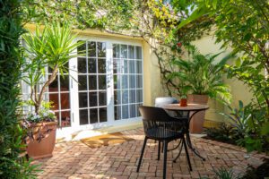 The suites have patios that open either to a private patio garden or to the pool.